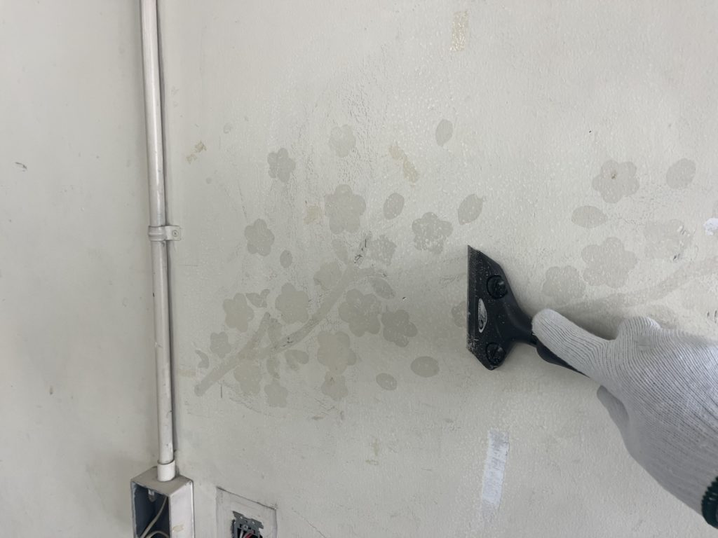 この手の内装塗装で一番手間がかかるのは下地処理です。